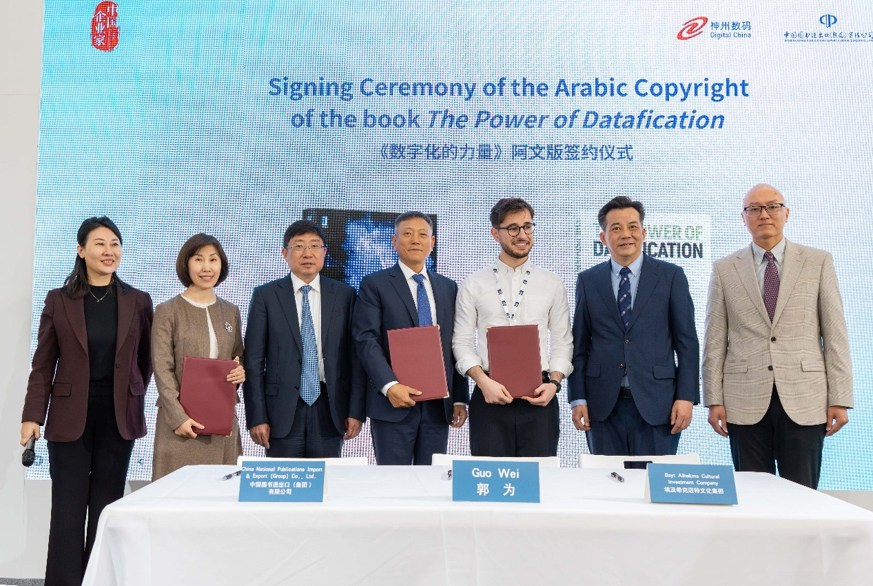 致辞环节后,《The Power of Time》在众多嘉宾、行业专家、媒体记者以及参观展览的读者的共同见证下揭幕发布。郭为的第一部数字化专著——《数字化的力量》阿文版翻译出版项目,也在现场完成签约,进一步扩大了郭为作品的国际影响力,也推动了中国企业家思想在全球范围内更广泛地传播。